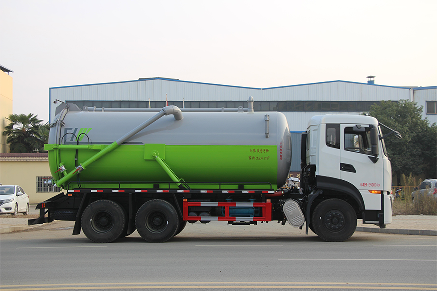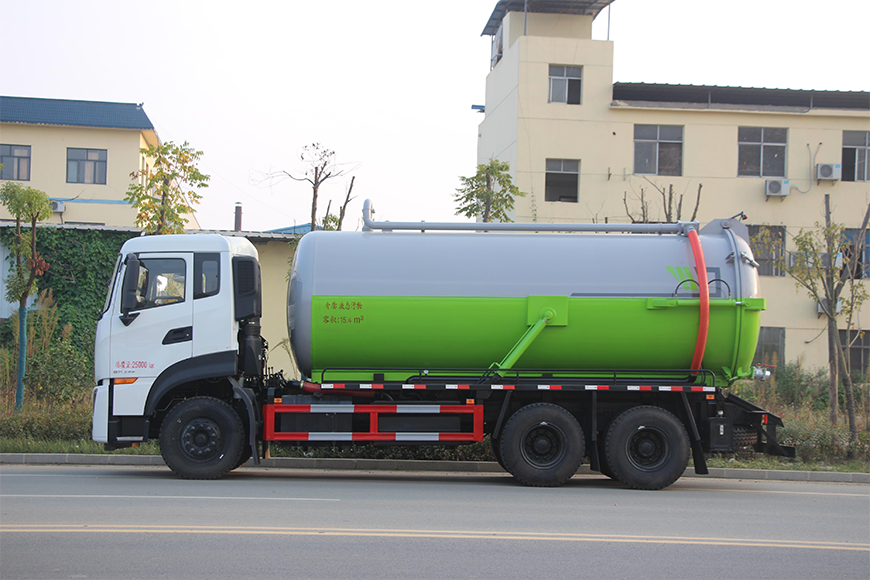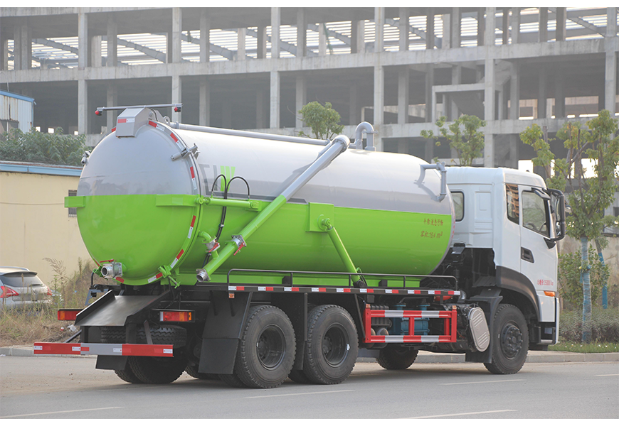 上裝配置 污罐:Q235武鋼6MM厚碳鋼板,標配采用億豐2BE-204水循環泵,防溢閥,視糞管,配一根8米吸污管,罐體封頭一次壓鑄成型、罐體帶舉升,后蓋為液壓開啟。罐內污物可通過后蓋直接傾倒,具有真空度高、噸位大、效率高、用途更廣泛的特點。